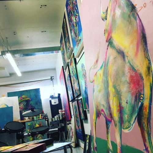 Pat Cantin works with oil, aerosol and acrylic for his canvas production. Each medium brings a different essence to the work.